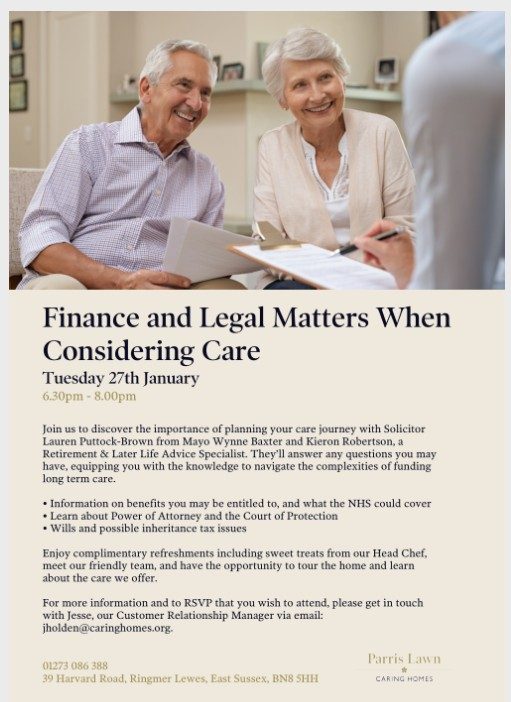 Join us to discover the importance of planning your care journey with Solicitor Lauren Puttock-Brown from Mayo Wynne Baxter and Kieron Robertson, a Retirement and Later Life Advice Specialist. They'll answer any questions you may have, equipping you with the knowledge to navigate the complexities of funding long term care.