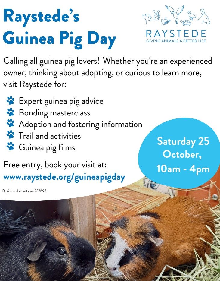 Whether you're an experienced owner, thinking about adopting, or simply curious to learn more – come along to Raystede for our Guinea Pig Day!